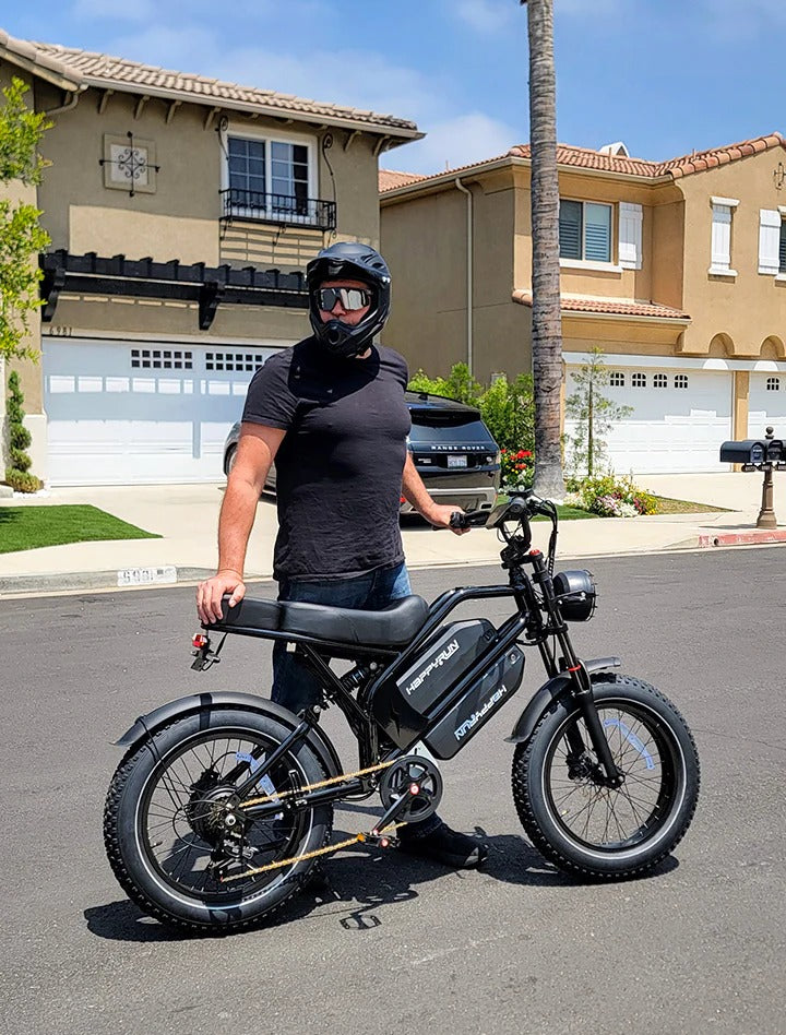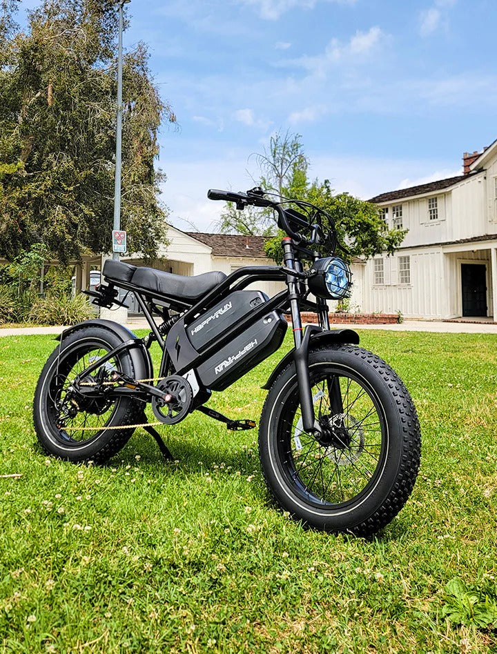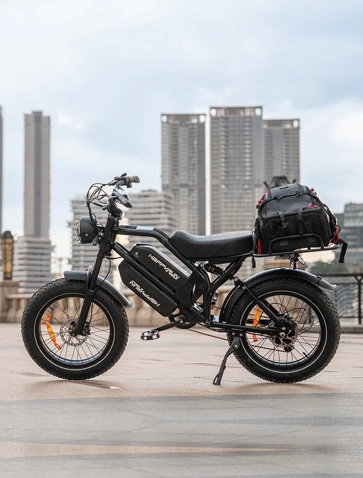 The HappyRun G70 is the ultimate electric bike for families. This electric cargo bike is perfect for taking the kids across town for a fun ride. It comes with two seats, dual batteries, and a 2000W motor. In addition to being a daily commuter e-bike, the passenger seat can be replaced with a cargo rack for loading gear or miscellaneous items while traveling or shopping. With its strong frame and powerful motor, it can carry up to 330 lbs with ease, making it the perfect electric cargo bike for families.Powerful PerformancePowered by a high-performance 1000W motor and built to carry up to 330 lbs, it delivers the strength you need—whether hauling cargo or carrying with the kids.Full Suspension SystemWith adjustable front and rear suspension, it offers superior comfort and control—so bumps and rough trails are no problem at all.